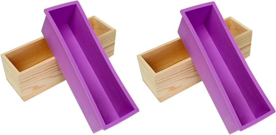 Complete 2PCS Silicone Soap Making Set with Wood Box - Vibrant Purple Elegance