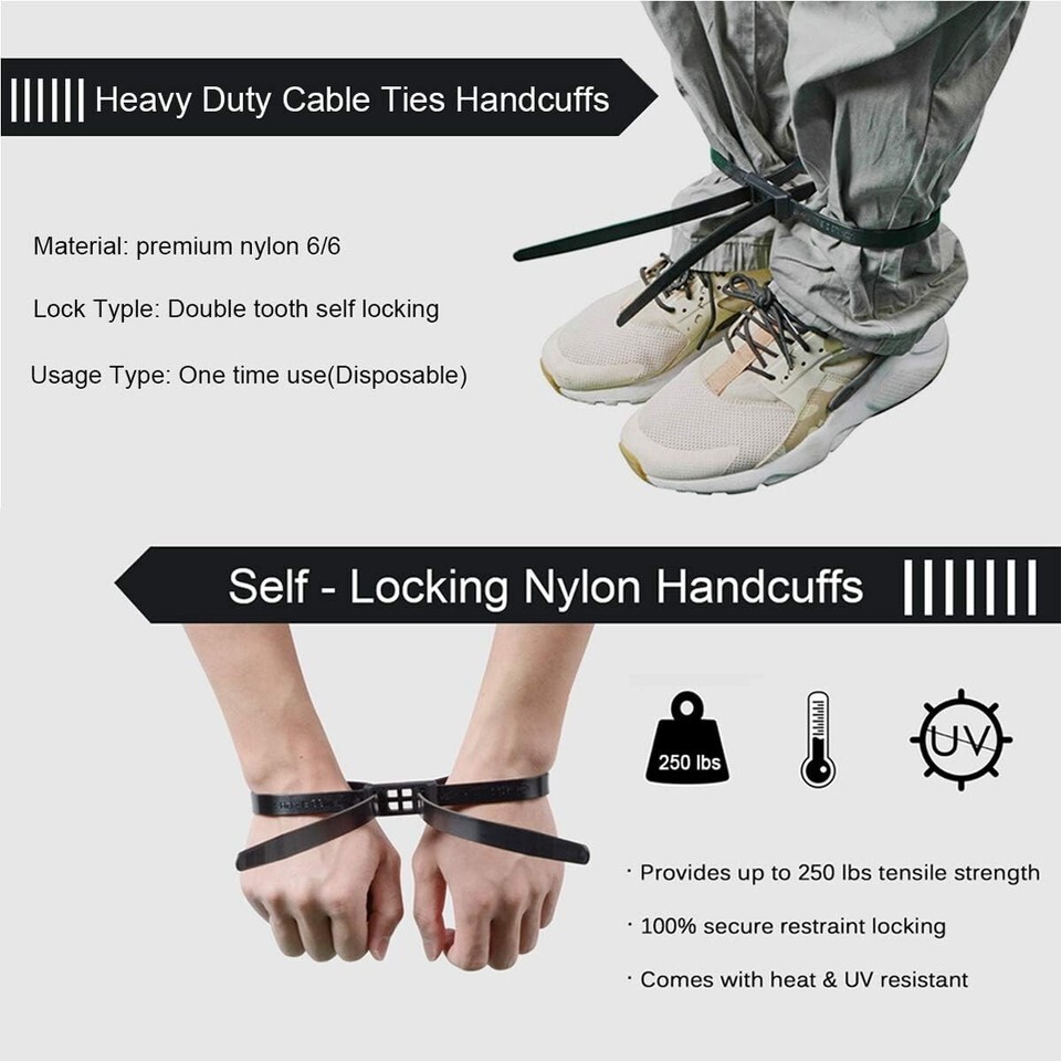 Portable 35.4? Nylon Zip Tie Handcuffs - 10 Pack, UV Heat Resistant, 250 lbs