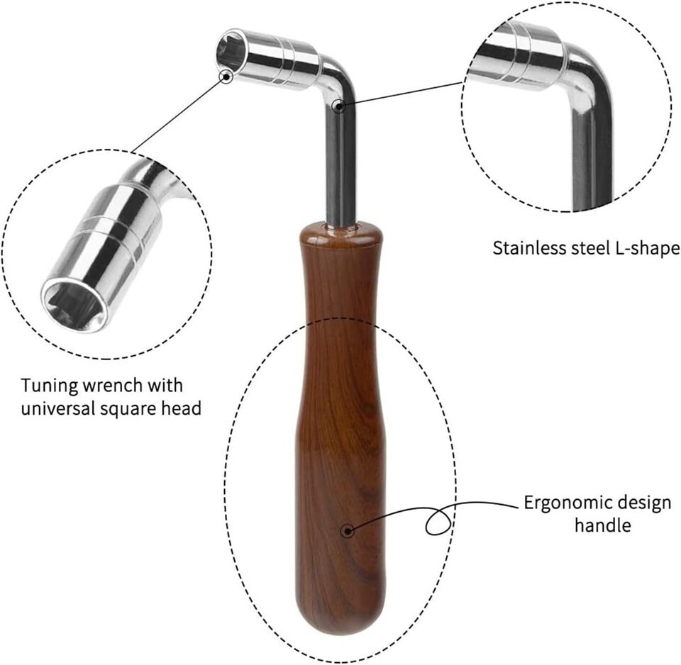 Piano Tuning Wrench: L-shaped design crafted from hard stainless steel, featuring an ergonomic plastic handle for durability and abrasion resistance. Portable and easy to use, the perfect companion for on-the-go tuning.