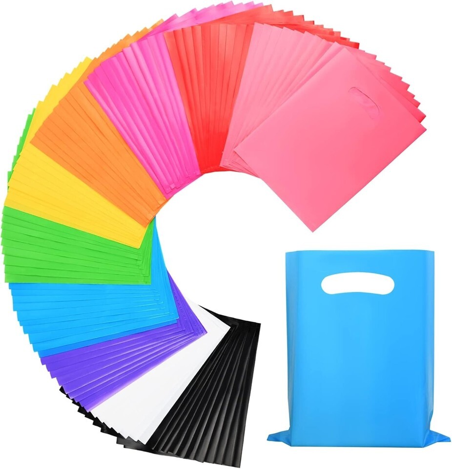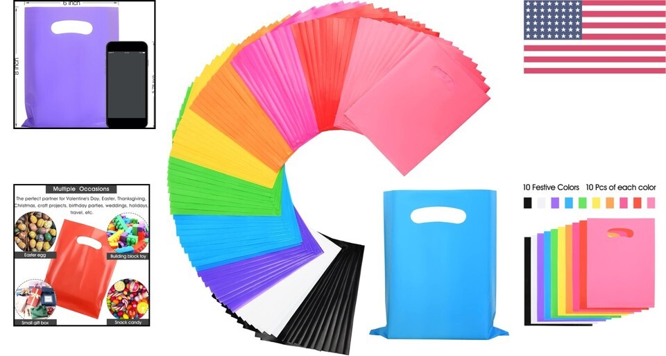 Versatile 6" x 8" Plastic Favor Bags in 10 Colors - 100 Pack for All Occasions