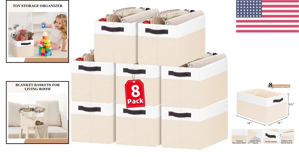 Elegant 8-Pack Fabric Storage Bins - Multi-Purpose Organizers for Every Room