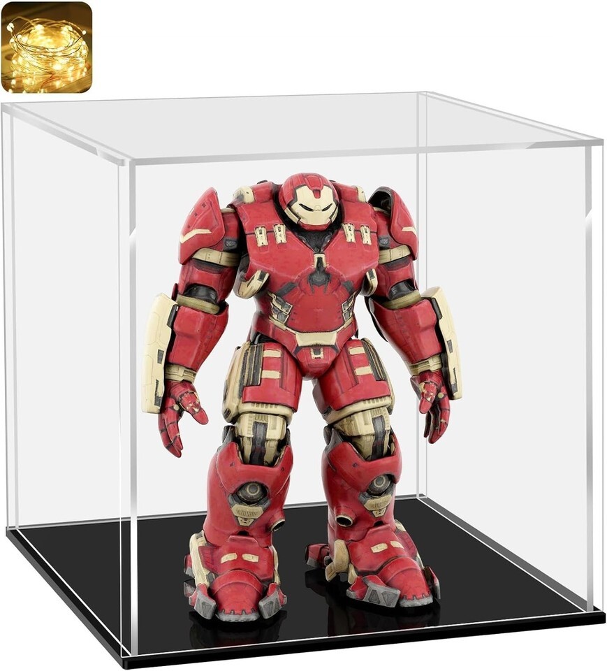 Features: Dustproof,Easy Assembly,LED Lighting Option,Includes Cleaning Accessories,Easy-to-assemble parts,Crystal-clear acrylic,Anti-dust gloves included,Microfiber cloth for cleaning,acrylic material,Dust-resistant design,LED light strip included,Tabletop mounting,Round plate for film removal