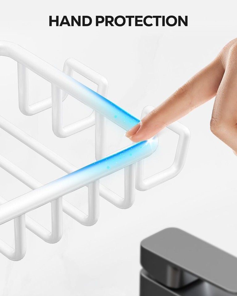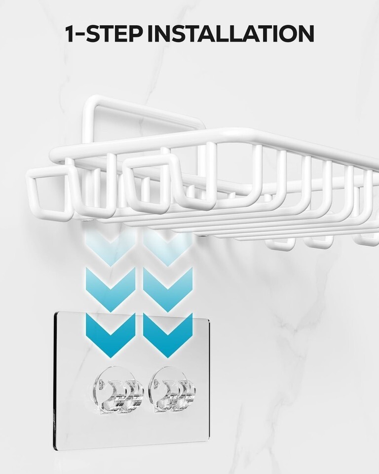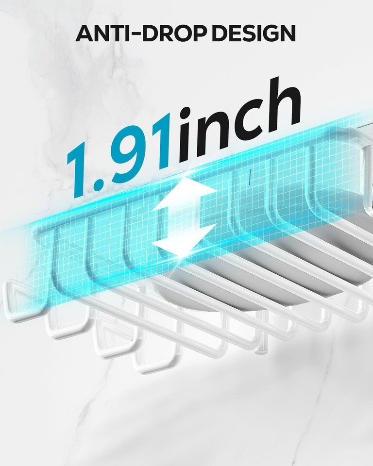 Damage-Free Installation: Easily stick the adhesive to the wall, hang the soap holder on the hooks, and enjoy a drill-free, damage-free setup.