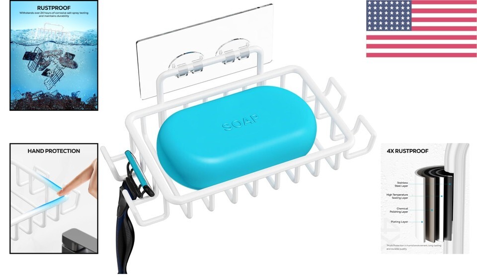 Versatile Soap Holder with 4 Hooks - Waterproof Stainless Steel for Showers