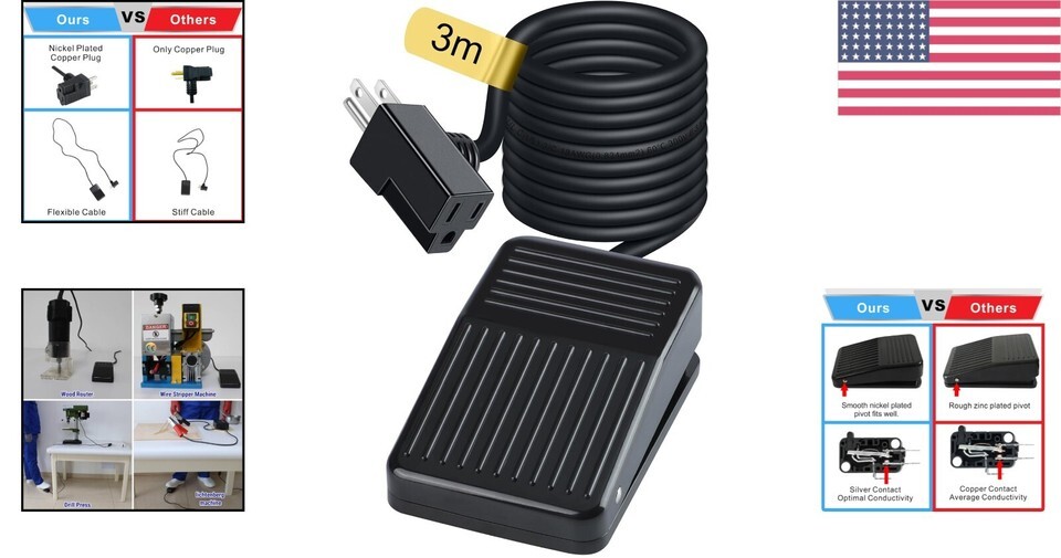 10ft Momentary Foot Switch Pedal - Hands-Free Control for Power Tools Lamps