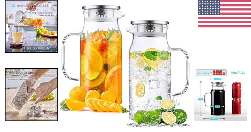 Capacity: Each pitcher holds 40 fl-oz (1.2 liters), ideal for water, iced tea, lemonade, coffee, sangria, and more.
