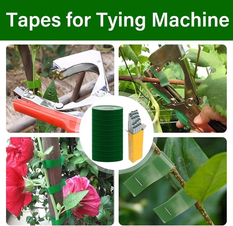 Plant Tying Machine Bundle: 10 Rolls of Ribbon 10,000 Staples for Garden Use