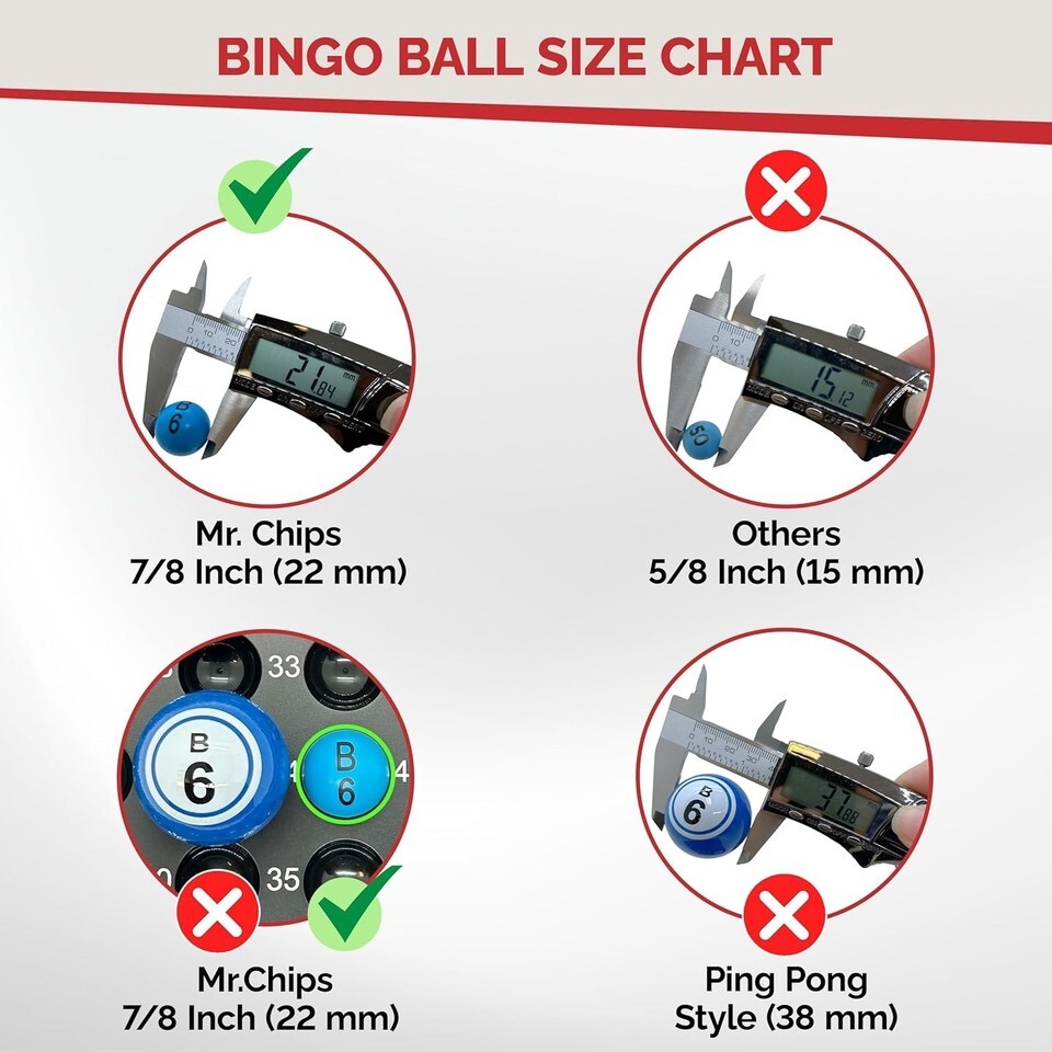 Compatibility: Please note, these bingo balls are not compatible with mini 6" or jumbo 19" ping pong style cages.