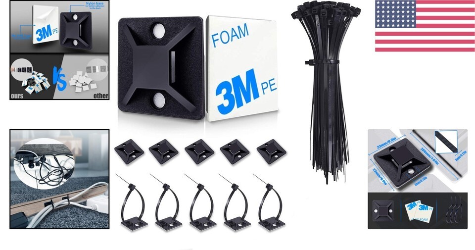 Effortless Installation 100-Pack Cable Management Clips - Strong Reliable