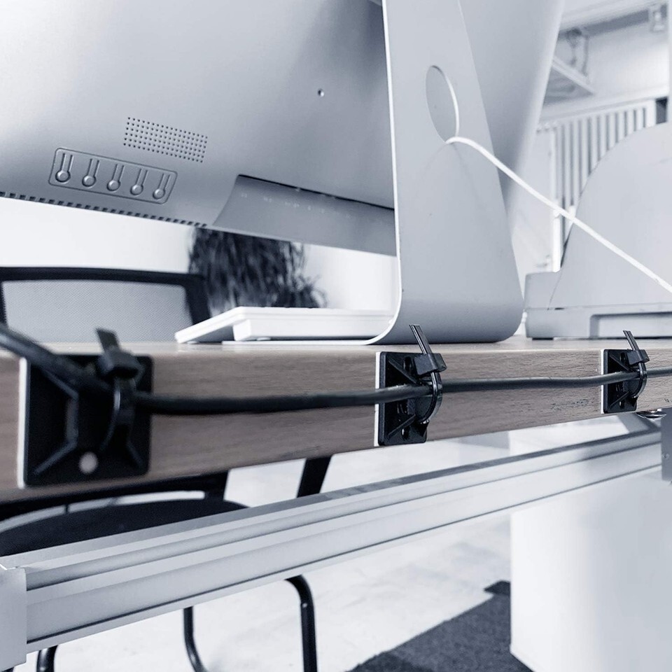 Great for organizing cables under desks in home offices and workshops.