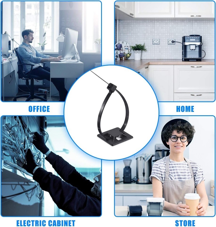 Features: Self-Locking,Self-Adhesive,Easy Installation,Indoor Outdoor Use,Integrated Screw Hole,Tool-Free Installation,Flexible,Strong Adhesive,Removable Adhesive