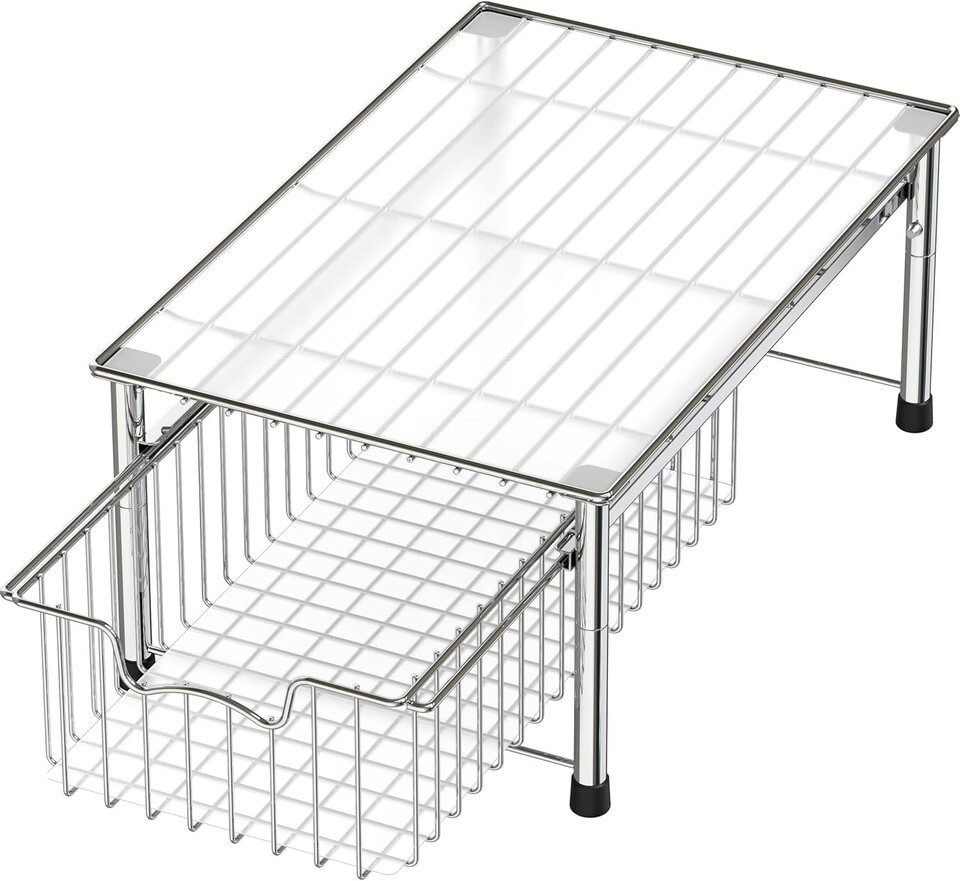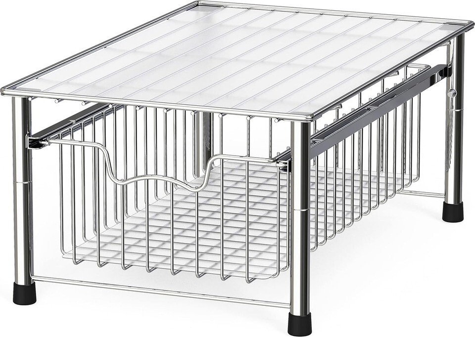 Elegant Chrome Stackable Basket Drawer - Space-Saving Organizer, 16.8" L
