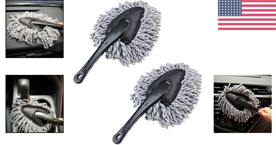 2 Microfiber Car Duster Brushes - Lightweight Efficient for On-the-Go Cleaning