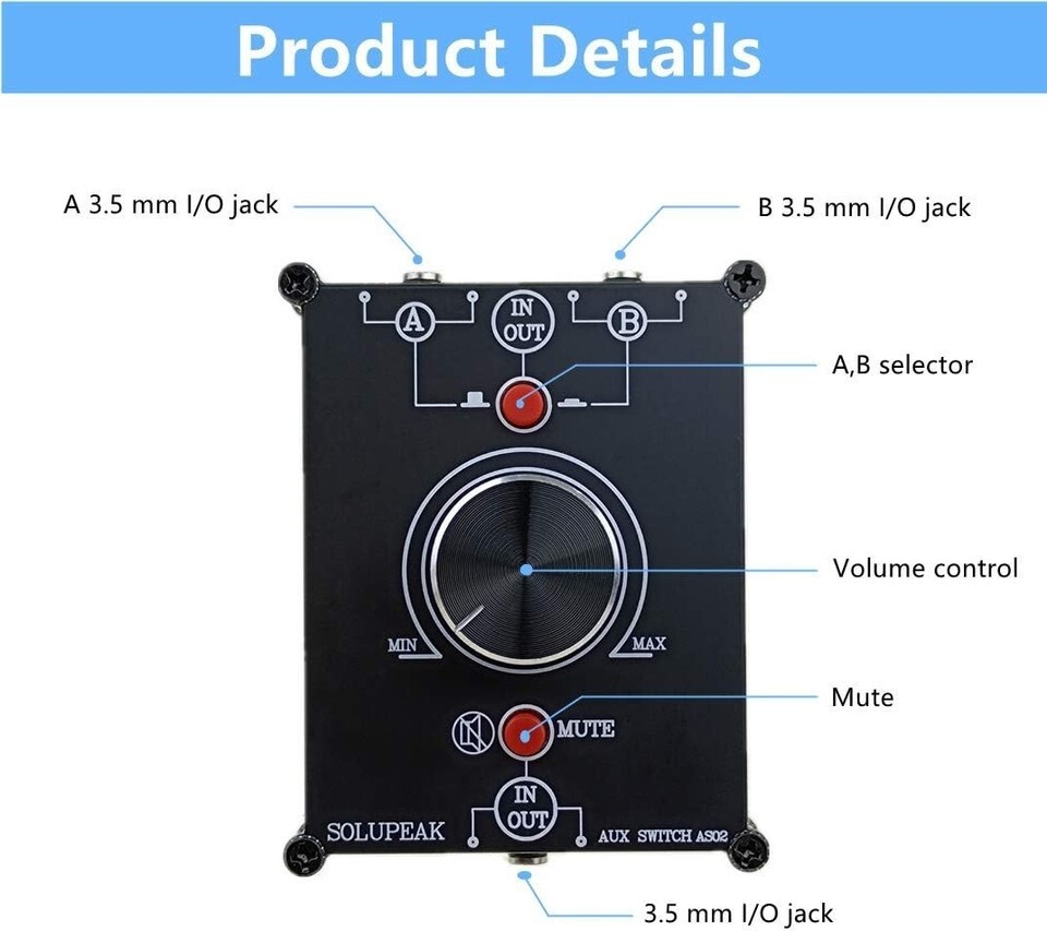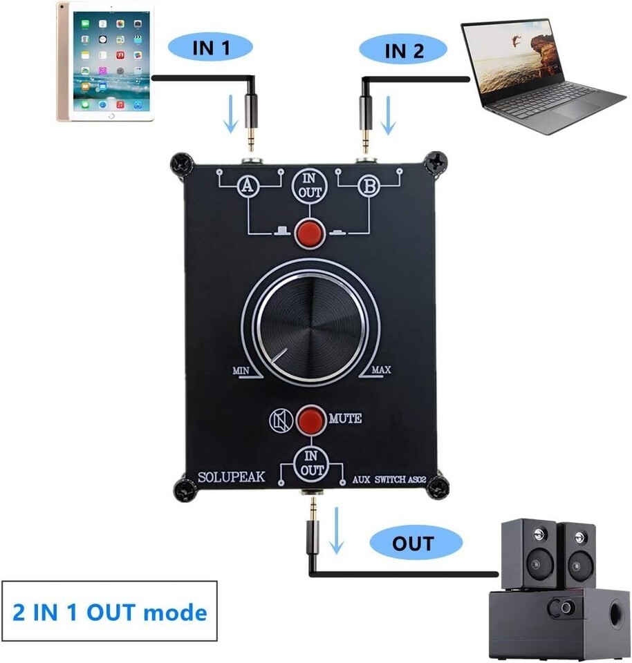 User-Friendly 3.5mm Stereo Switch Box with Easy Volume Control - Versatile Use