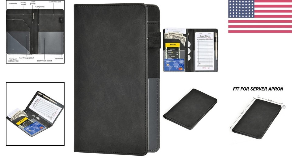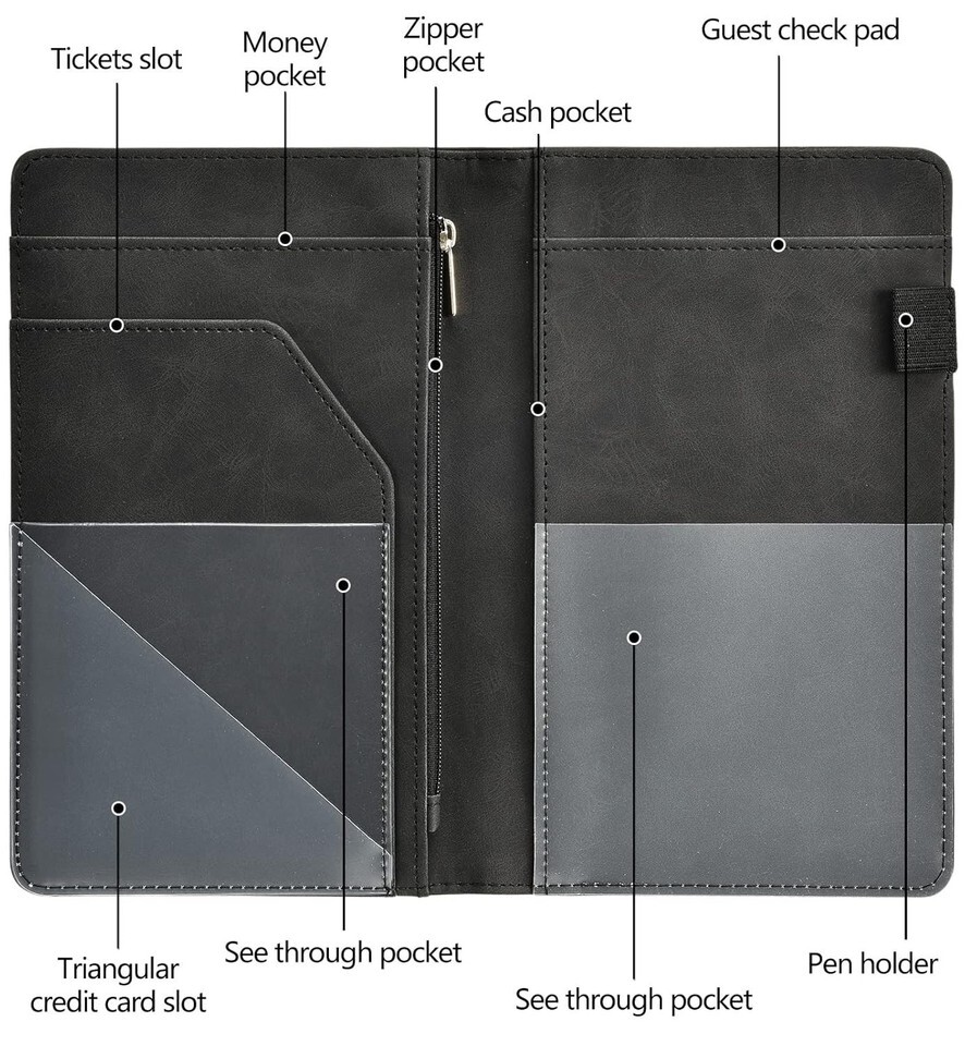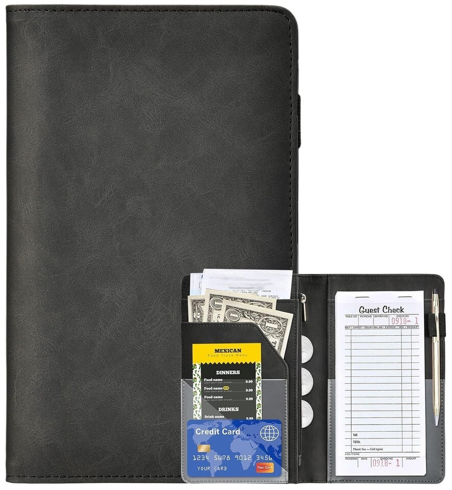 Practical Leather Waiter Book - Compact Server Wallet with Zipper Money Pocket