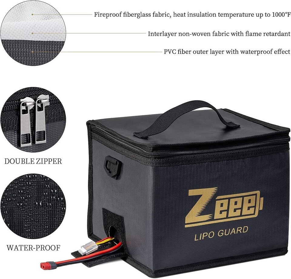 Ensure the safety of your charging and transporting needs with our Fireproof LiPo Battery Storage Bag, crafted to offer peace of mind and security for your valuable LiPo batteries.