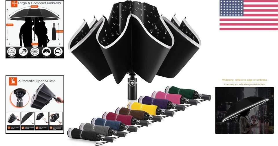 Features: Windproof,Reflective Stripe Design,Safer,Inverted Design,Automatic Opening/Closing,Compact/Folding,12 Ribs Construction,Waterproof,Lightweight