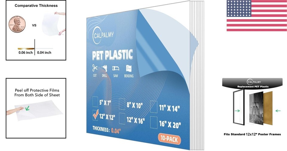 12x12? Clear PET Sheet Panels, 10 Pack - Safe Glass Alternative for Crafts