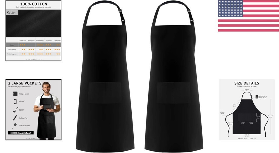 Its generous coverage, coupled with adjustable features, ensures that you look your best while staying protected from all the messiness that cooking can bring. The dual pockets are ideal for keeping your tools and recipes at your fingertips, allowing you to focus on creating culinary masterpieces.