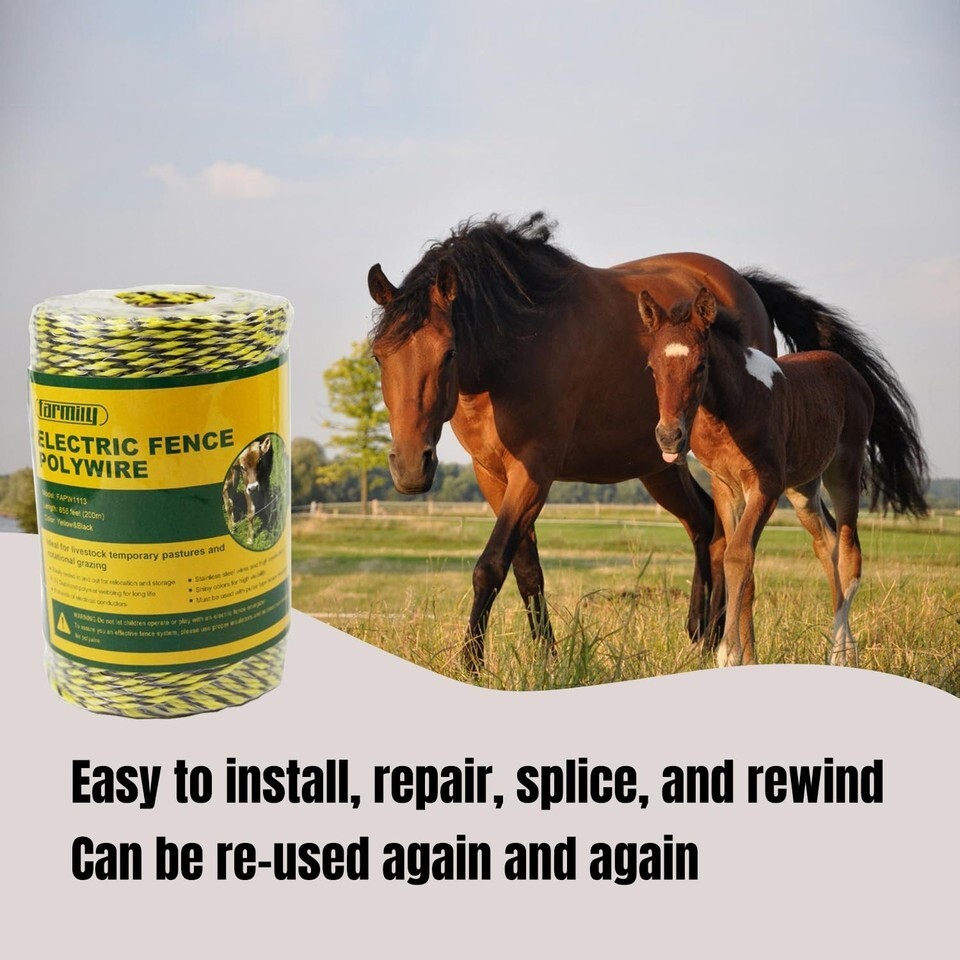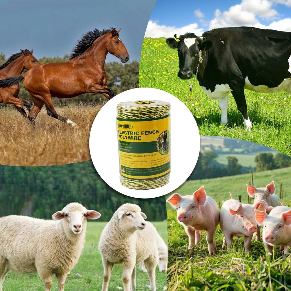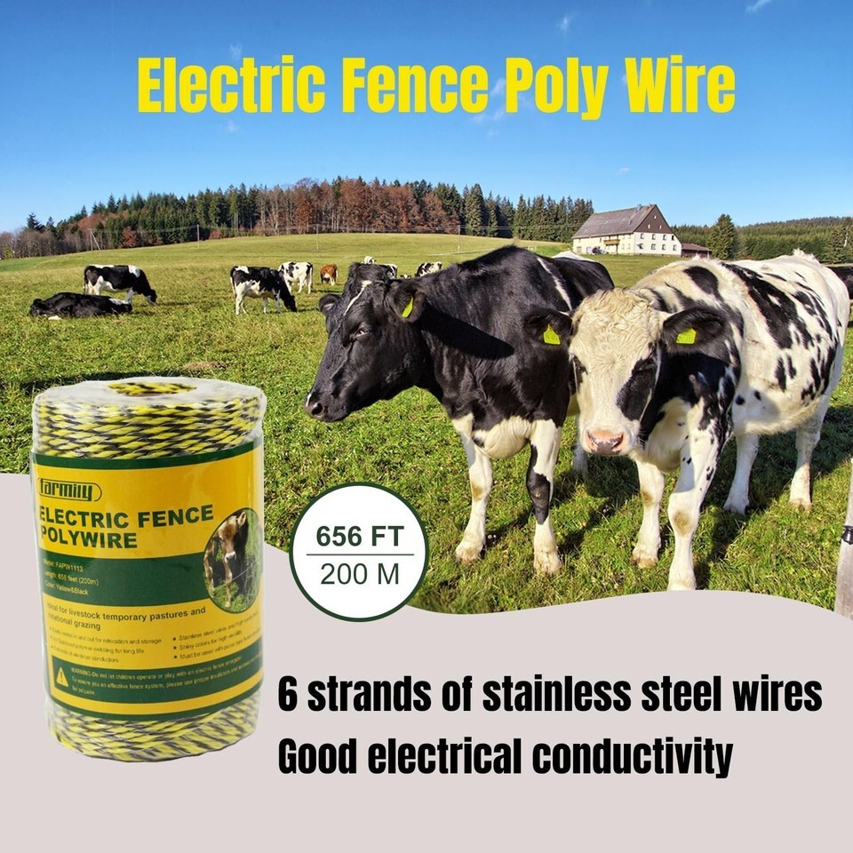 Experience peace of mind with our Lightweight 200m Electric Boundary Wire, an exceptional companion for ensuring the safety of your livestock. Crafted with 6 robust stainless steel strands and UV-treated for unparalleled durability, this polywire is not just an asset, but a necessity for the modern farmer.