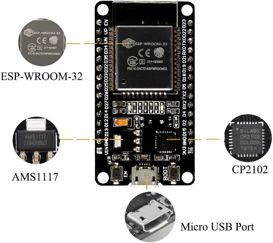 Features: WiFi Connectivity,2.4GHz Dual Mode WiFi,Bluetooth,Dual Cores Microcontroller,Integrated with Antenna,RF AMP,Low Noise Amplifiers,Filters,Supports LWIP protocol,Supports FreeRTOS,AP Mode,STA Mode,AP+STA Mode,Ultra-Low Power Consumption,Compatible with Arduino IDE