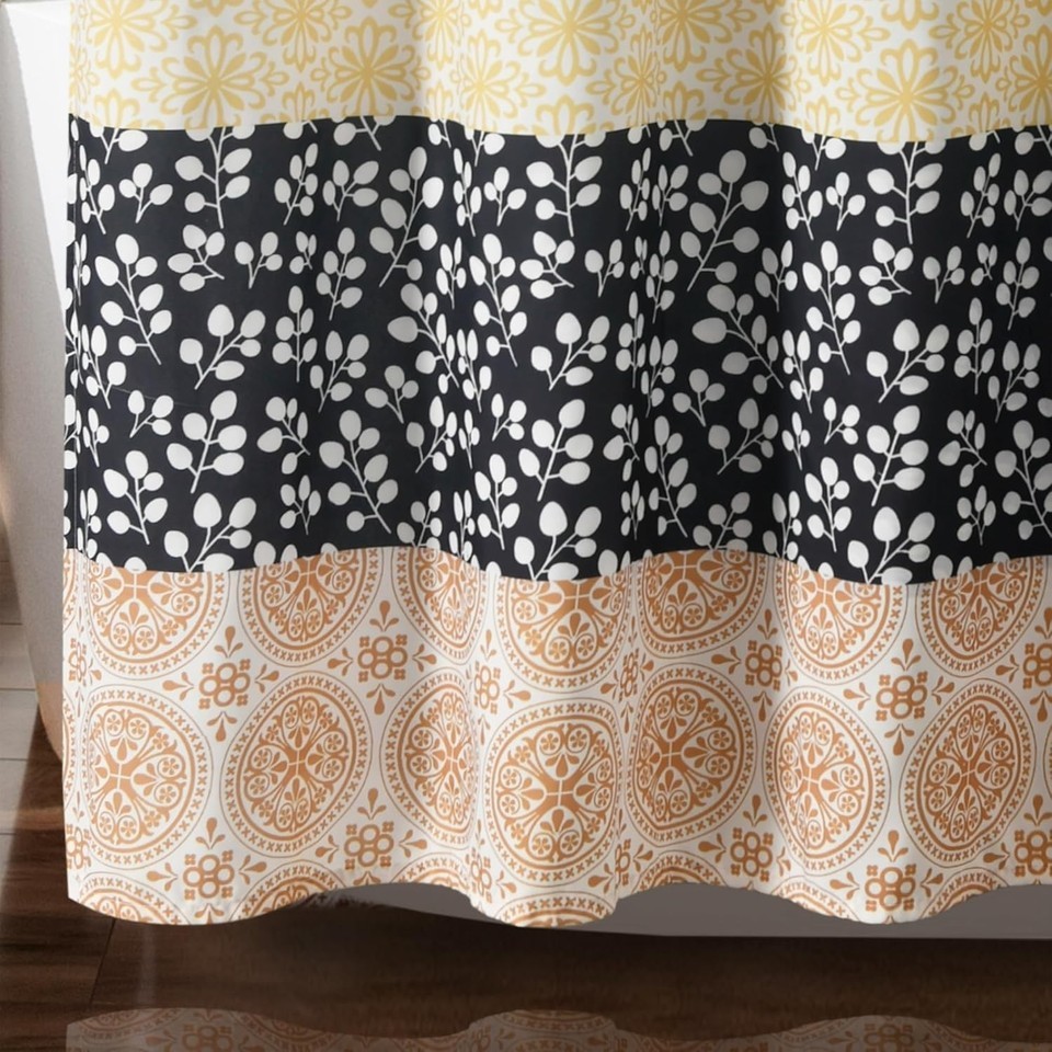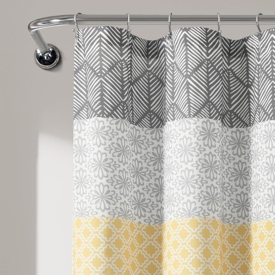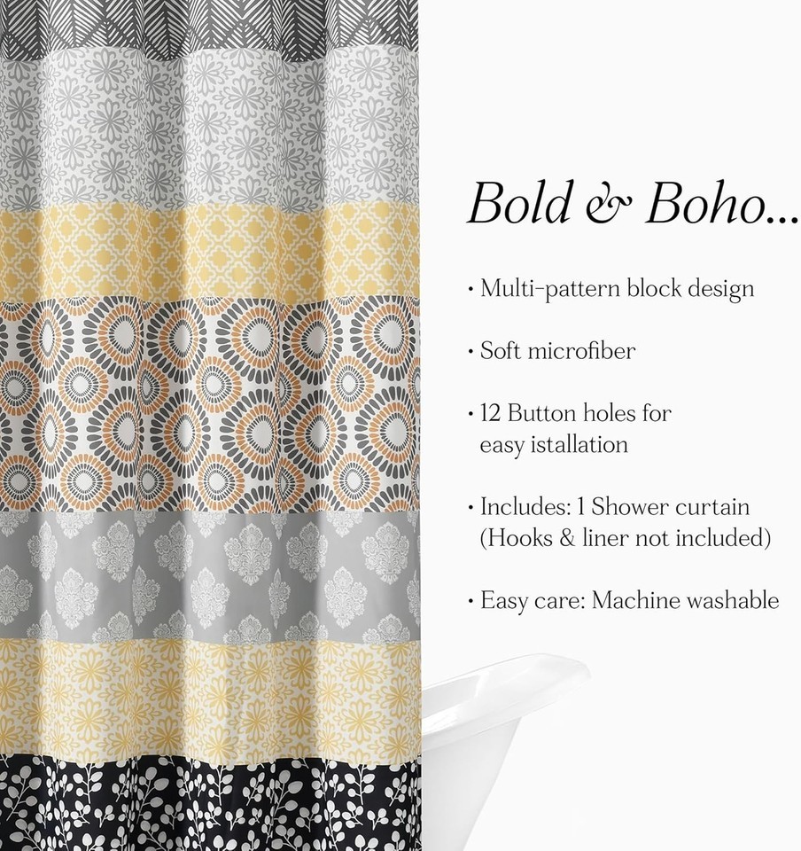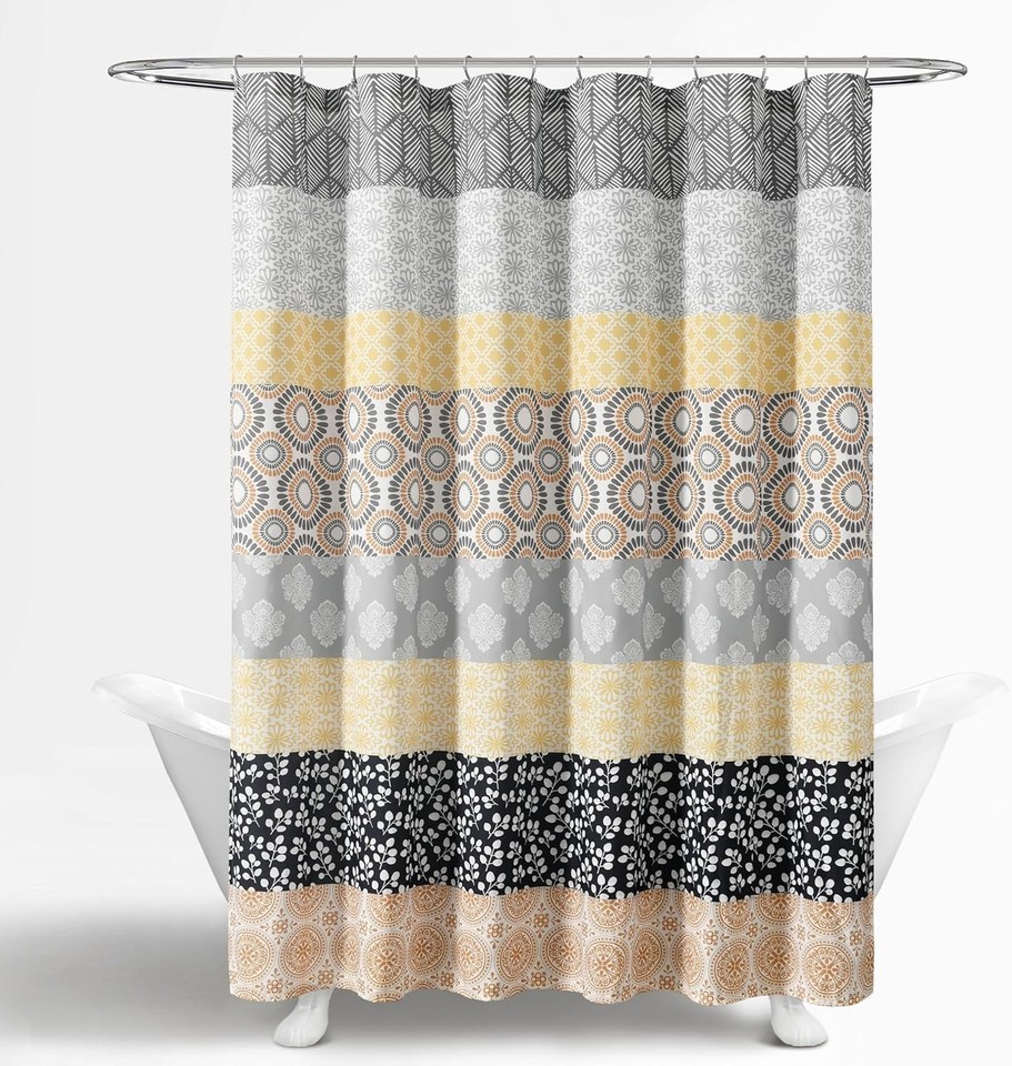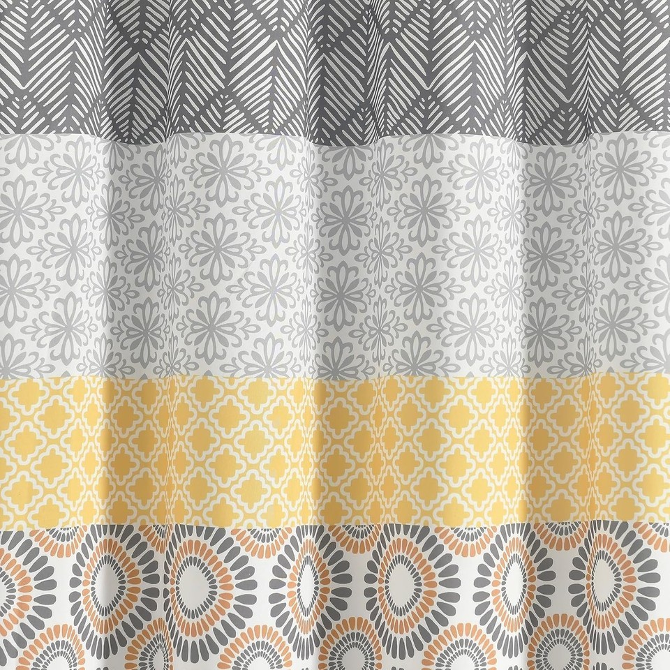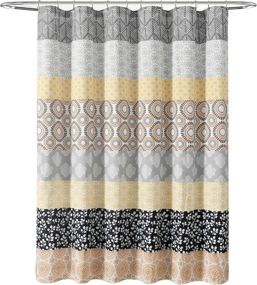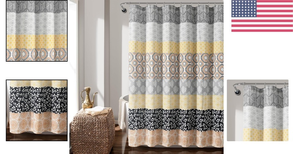 Bohemian Stripe Shower Curtain 72" W x 72" L in Yellow & Gray for Chic Bathrooms