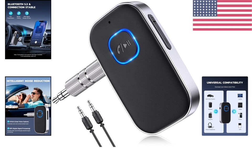 Features: Hands-free Calling,CVC8.0 Noise Cancellation,Digital Signal Processor,Intelligent Noise Reduction,Bluetooth 5.0,Auxiliary Bluetooth Adapter,3.5mm AUX Port,Navigation,Long Battery Life,Built-in Mic,Bluetooth to AUX,Car Audio Adapter