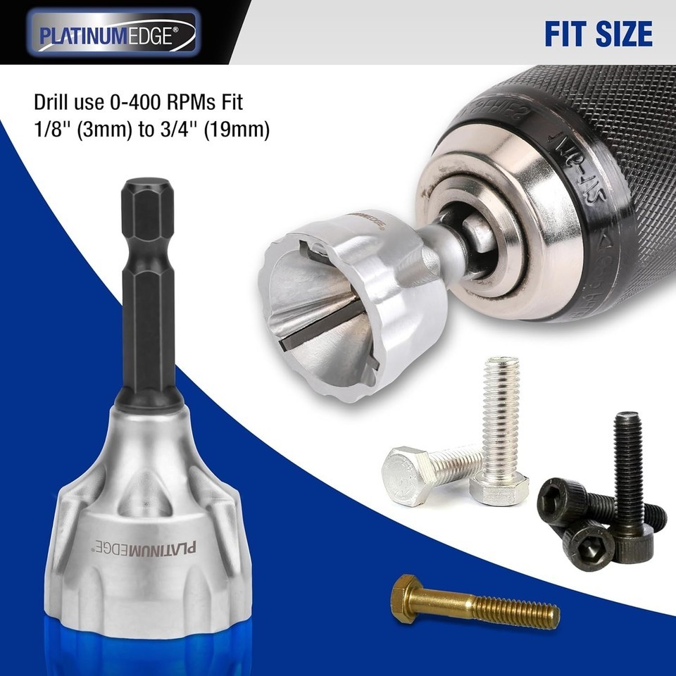 Designed for drill use at 0-400 RPM, accommodating round stock from 1/8? (3mm) to 3/4? (19mm).