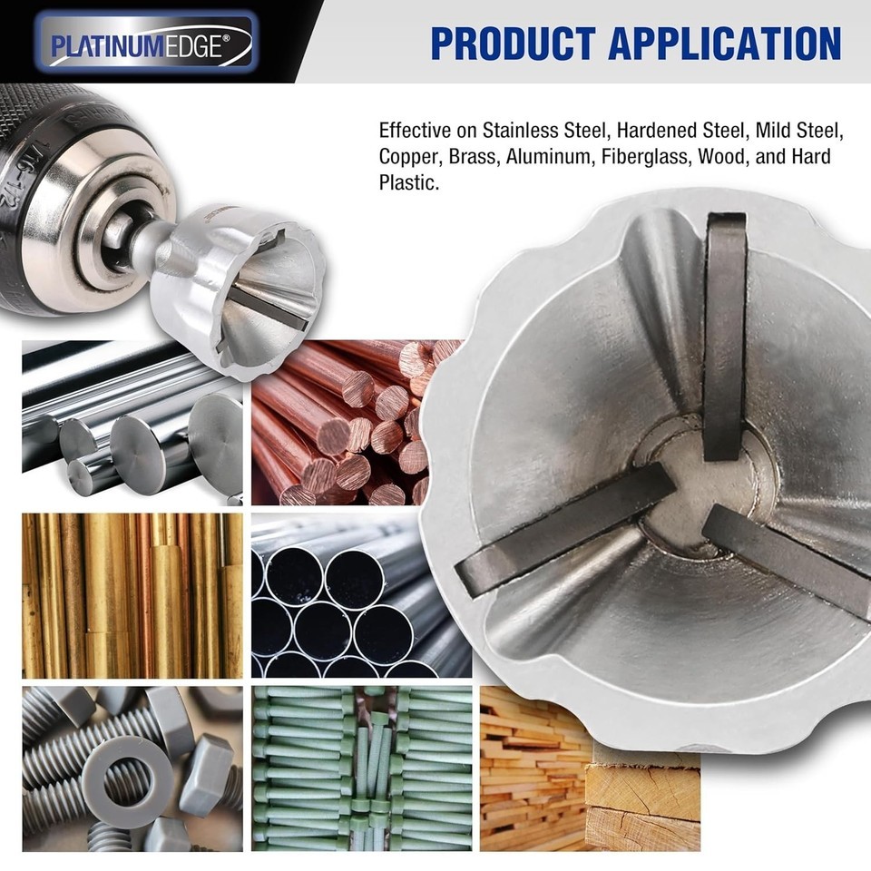Effective on a variety of materials: Stainless Steel, Hardened Steel, Mild Steel, Copper, Brass, Aluminum, Fiberglass, Wood, and Hard Plastic.