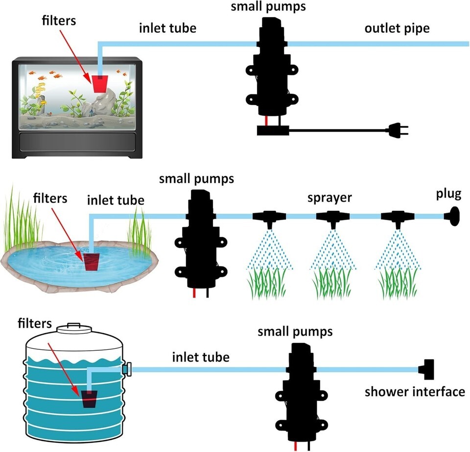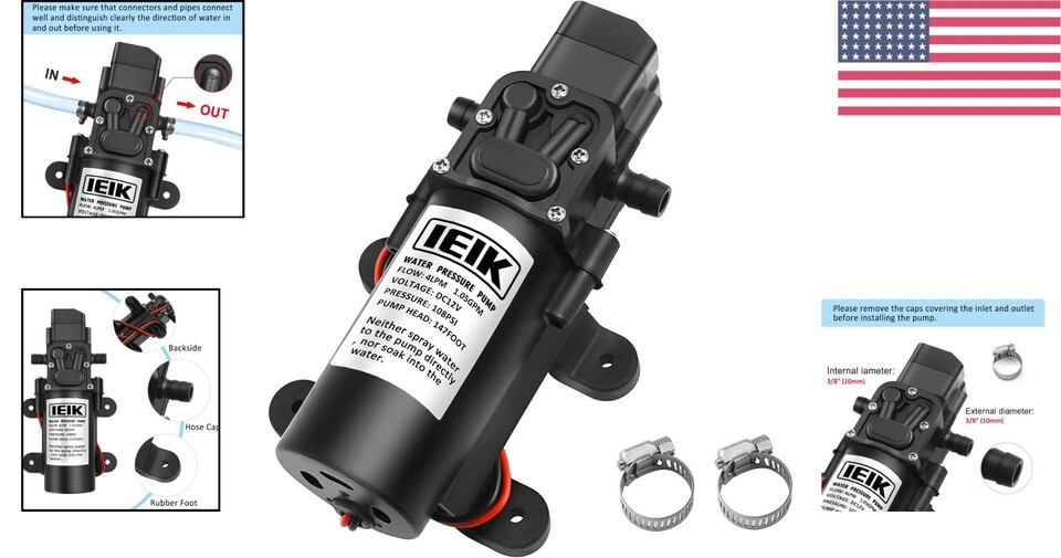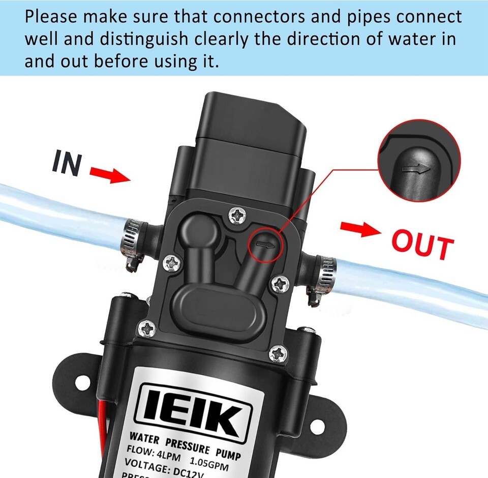 This diaphragm pump is not designed for submersible applications?maintain waterproofing to prevent short circuits.