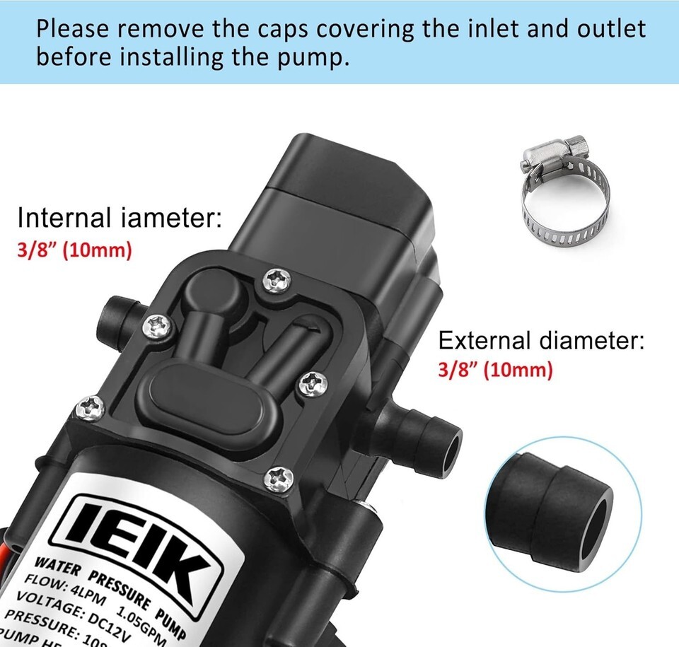 1 X Diaphragm Water Pump, 2 X Hose Clamps |