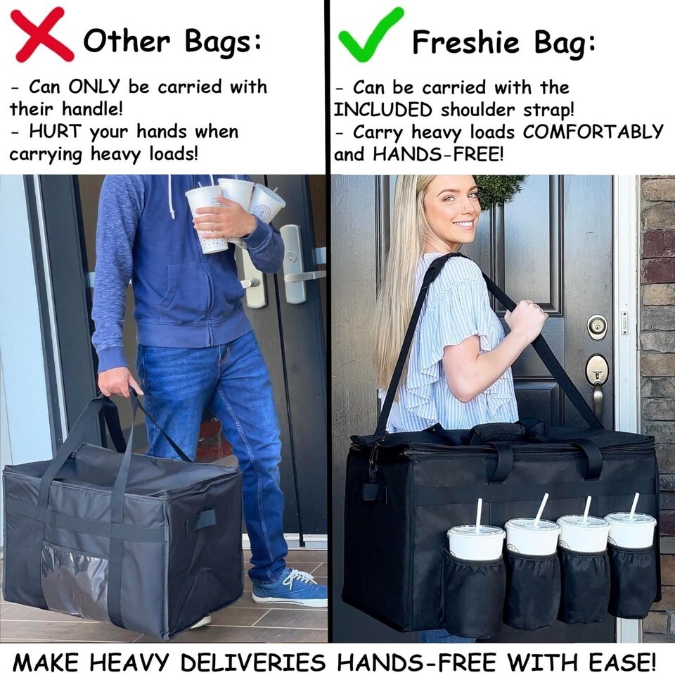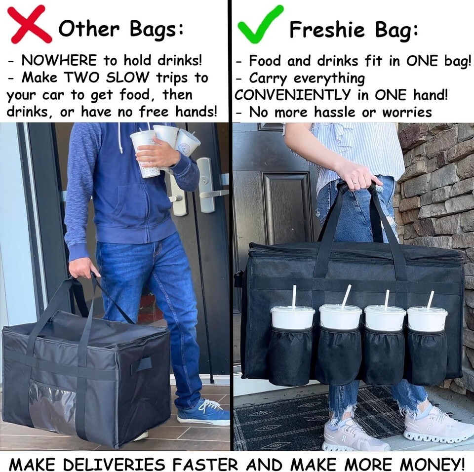 Warm and Cold Insulation: Polyethylene foam + aluminum foil interior ensures amazing insulation, keeping food fresh for all your deliveries.