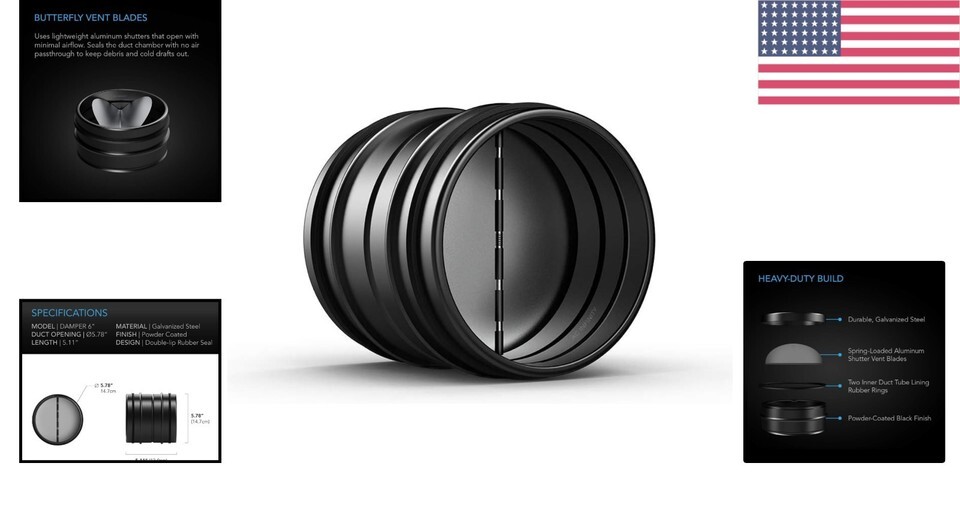 Transform your home?s HVAC efficiency and air quality with our Airtight 6-Inch Backdraft Damper. Designed with advanced features, such as rubber gaskets for a perfect seal and durable construction to withstand daily use, this damper is the ideal upgrade for any ventilation system. Don't compromise on air quality; invest in a product that prioritizes functionality while enhancing your indoor environment.
