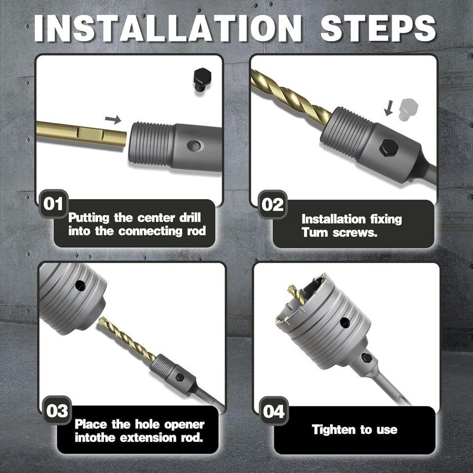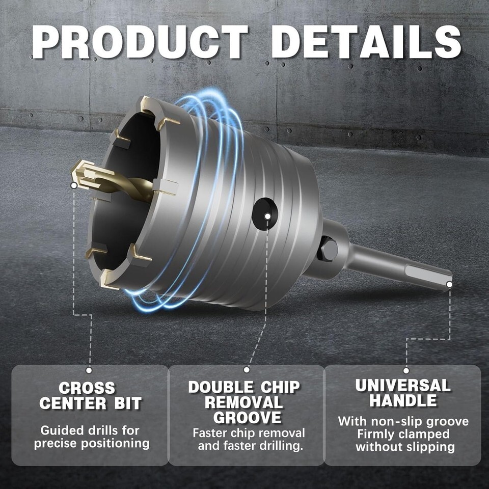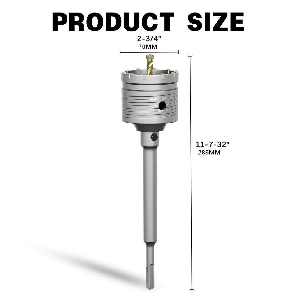 Elevate your masonry projects with the 2-3/4" Concrete Hole Saw. Expertly crafted from durable materials, it promises to serve you diligently even under the most strenuous conditions. Designed for compatibility with all major SDS Plus tools, it allows you to drill through various materials effortlessly. With practical features like a dust collector and professional guidance for usage, this hole saw is the ultimate solution for your home improvement needs. Order yours today and experience the perfect blend of performance and reliability!