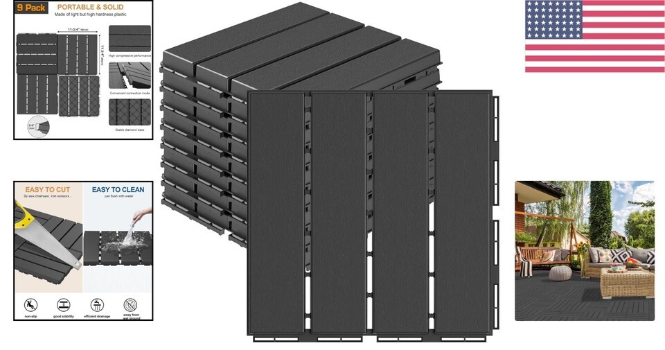 Efficient Drainage 12" Patio Deck Tiles - 9 Pack Perfect for Backyard Spaces