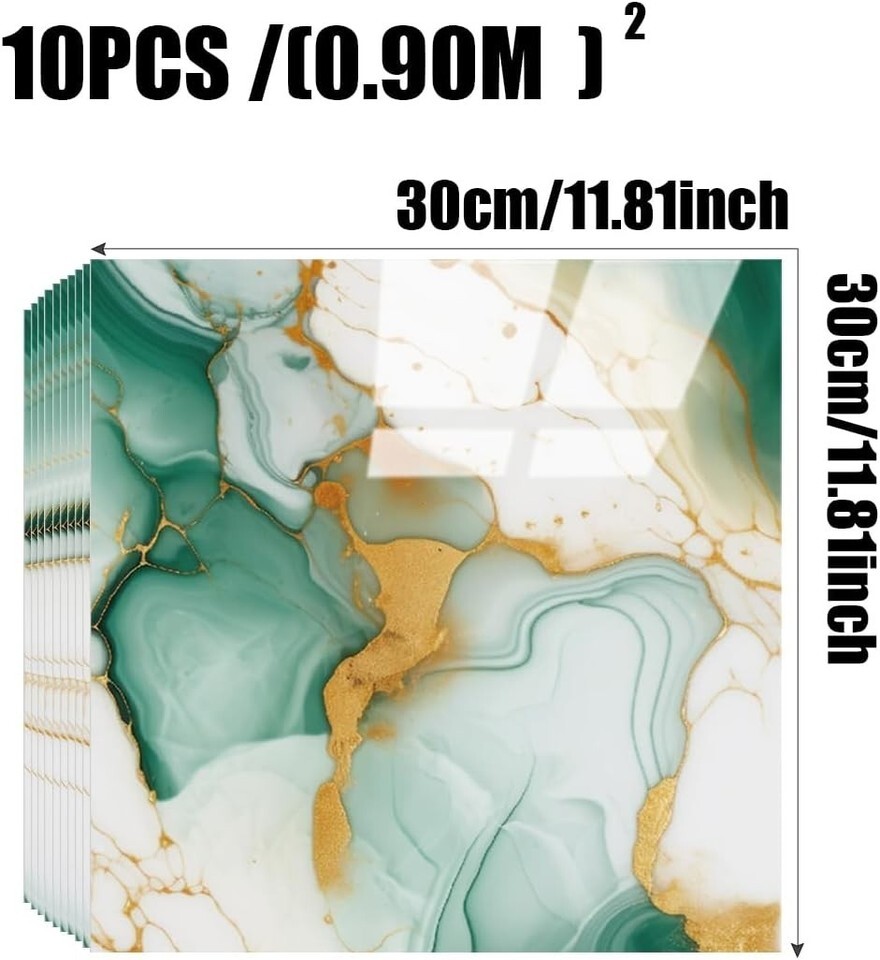 Received a pack of 10 pieces, dimensions of 11.8" x 11.8", covering an area of 9.7 Sq.ft.