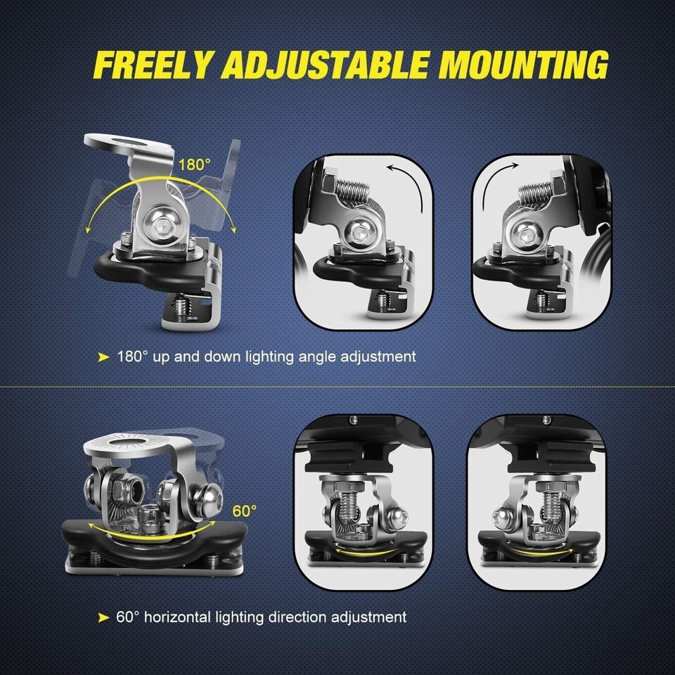 Free Adjustability: Effortlessly adjust your light?s angle with 180 up and down and 60 left and right settings, ensuring precision in your lighting direction.