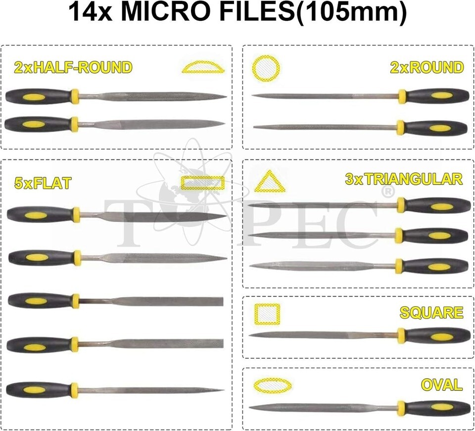 26-piece set including 4 flat, triangle, half-round, and round files along with 14 precise needle files.