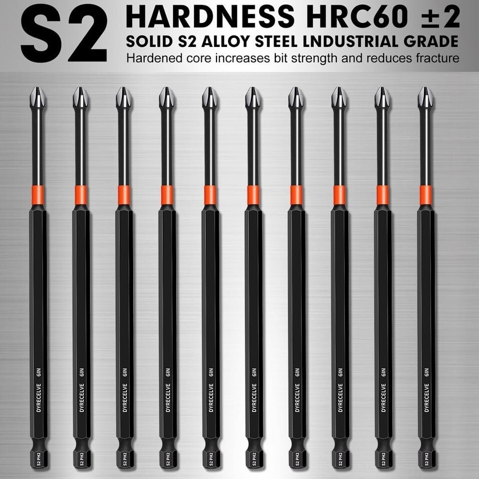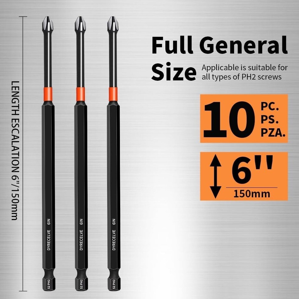 What You Get: A complete set of 10 high-performance 6-inch Phillips bits to enhance your toolkit?an essential for both seasoned professionals and enthusiastic DIYers.