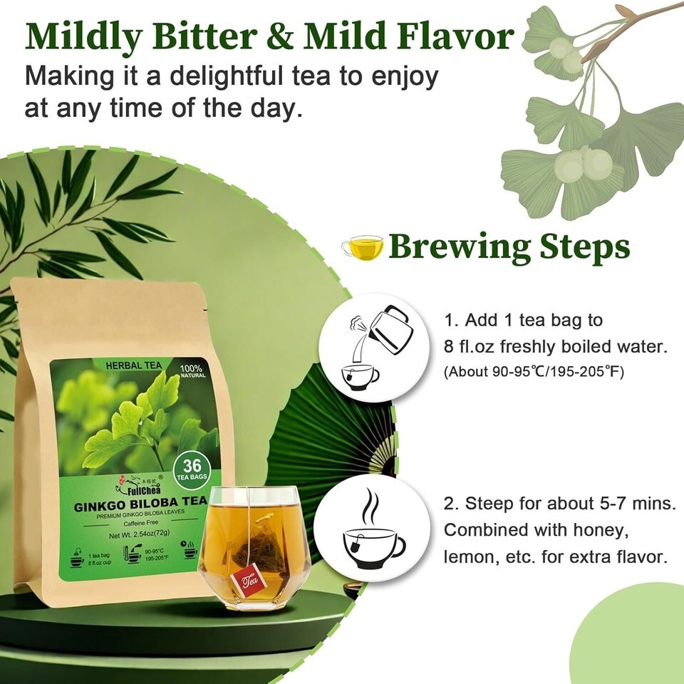 Don't settle for anything less than extraordinary - elevate your tea ritual with our 36 Ginkgo Biloba Tea Bags and embrace wellness in every cup.