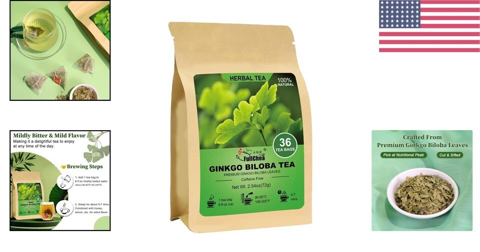 36 Ginkgo Biloba Tea Bags - Mildly Bitter, Earthy Flavor for Relaxation Focus