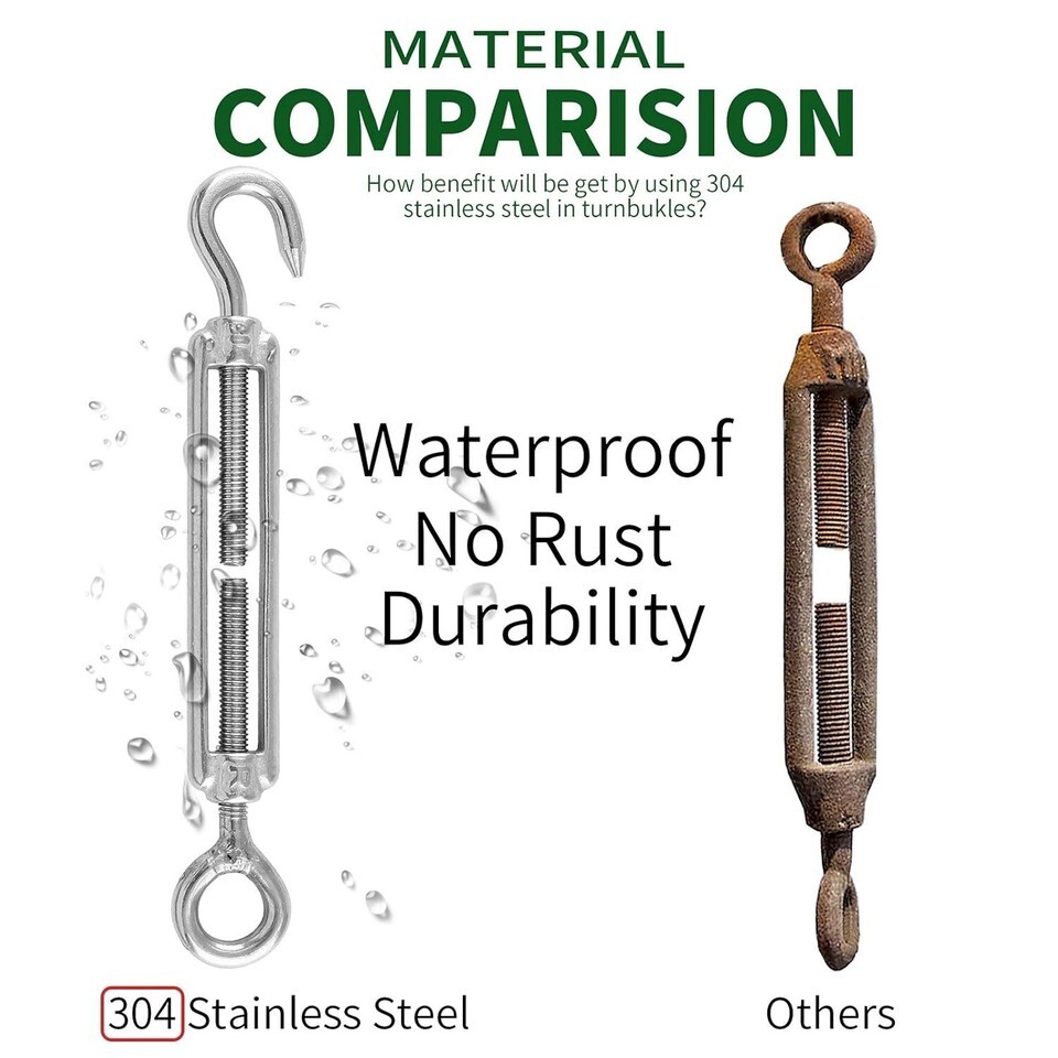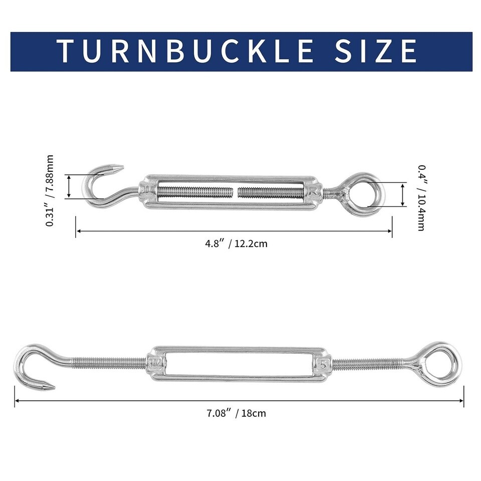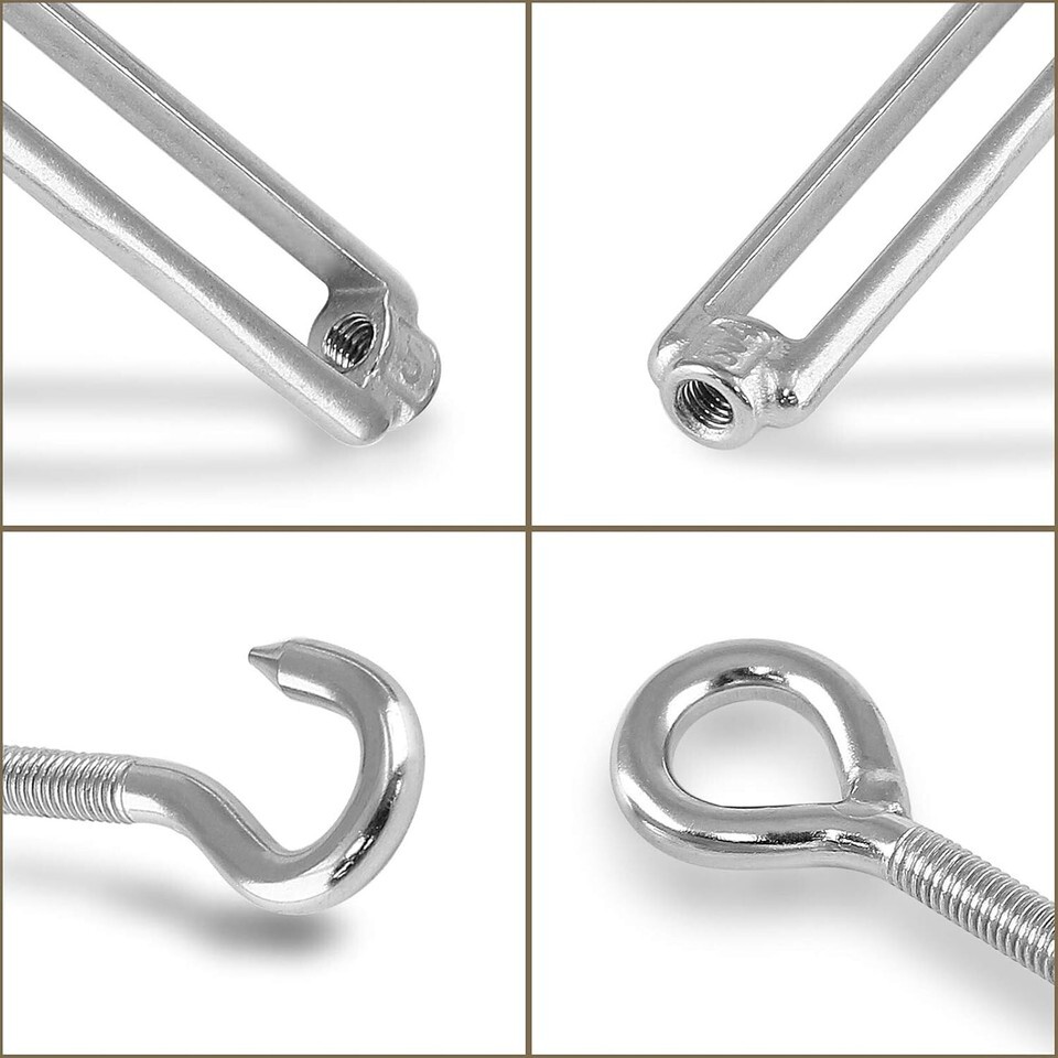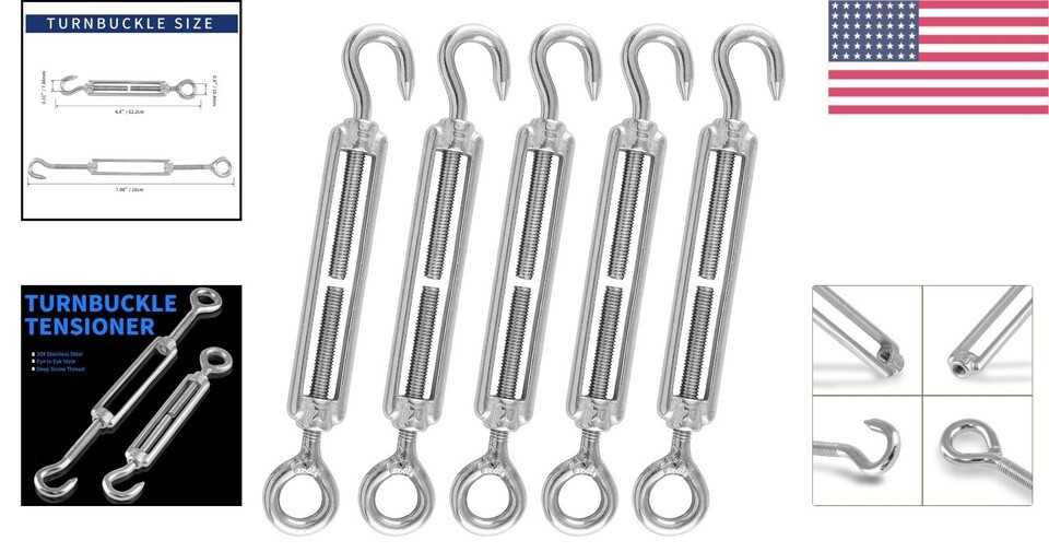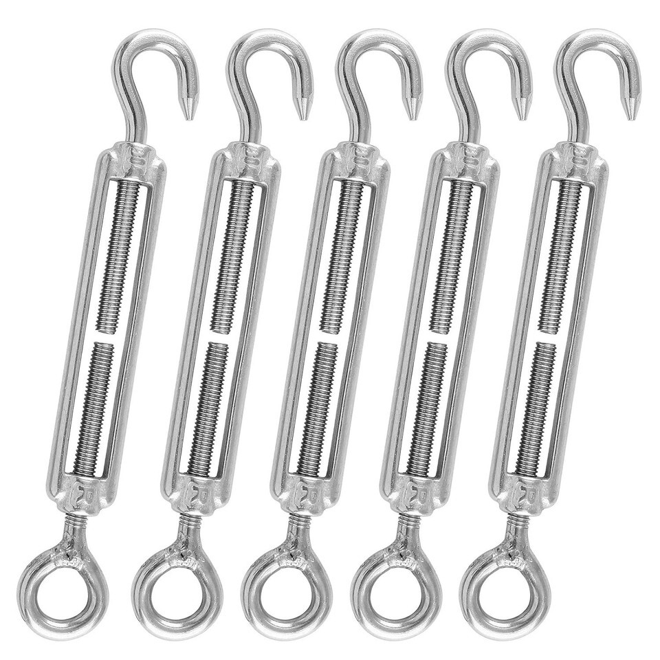 5-Pack Adjustable Hook Eye Turnbuckles - Stainless Steel Wire Rope Tensioners
