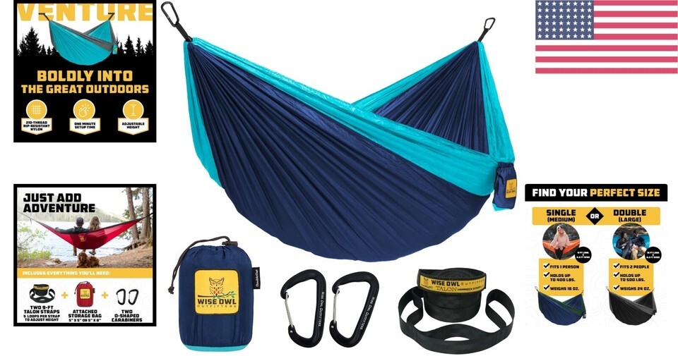 Lightweight Double Hammock for Camping and Travel - Holds 500lbs, Easy Setup