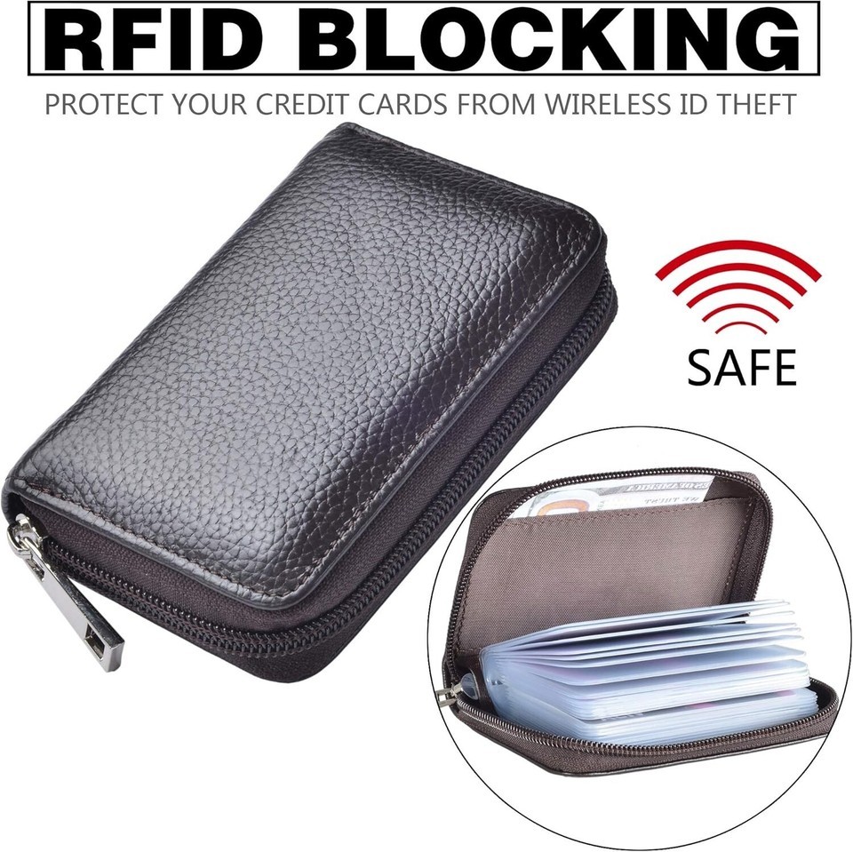 Compact Genuine Leather Wallet with 26 Card Slots RFID Blocking - 5x3 Inches