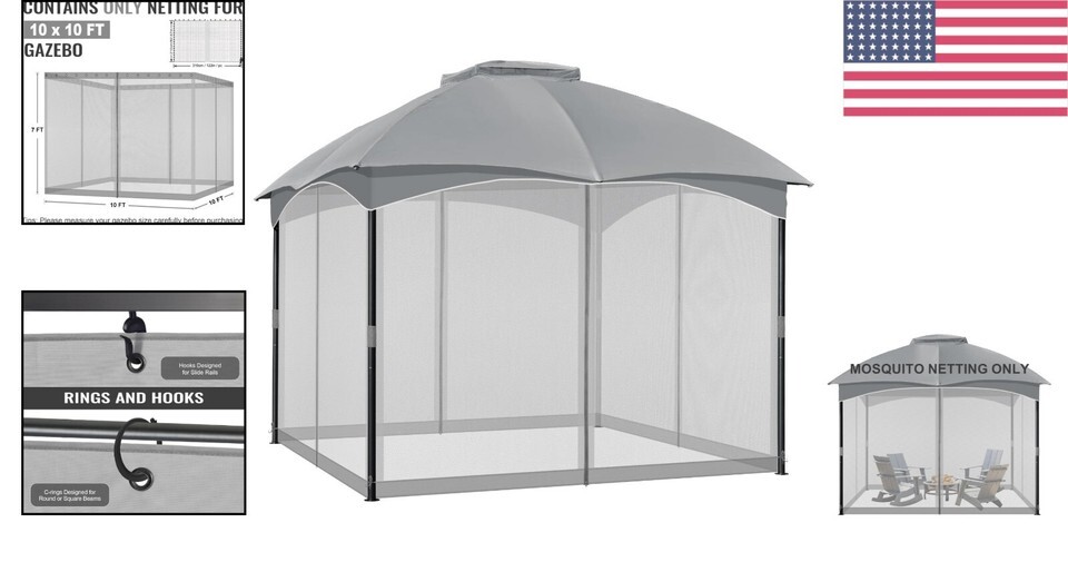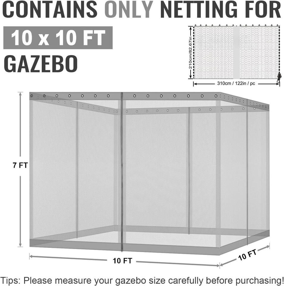 VERSATILE COMPATIBILITY: Our replacement netting adapts to an array of gazebo sizes including 10'x10', 10'x12', 10'x13', 12'x12', 12'x14', and 12'x16', making it the perfect universal accessory for enhancing your outdoor shelter (this is a 4-panel set; canopy and frame not included).