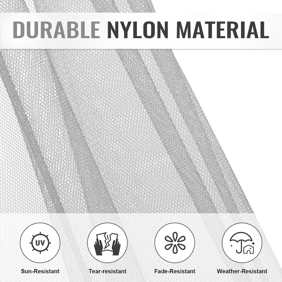 MATERIAL: Crafted from high-quality 100% nylon, our mosquito netting has been rigorously tested to meet the US CPAI-84 fire retardant standard while ensuring incredible resilience against weather elements.