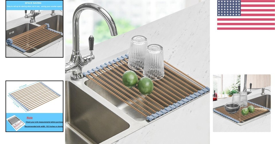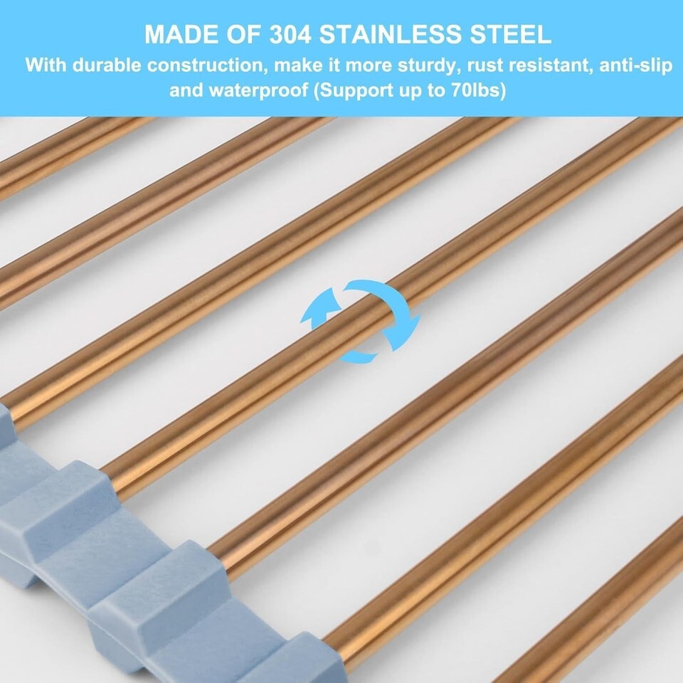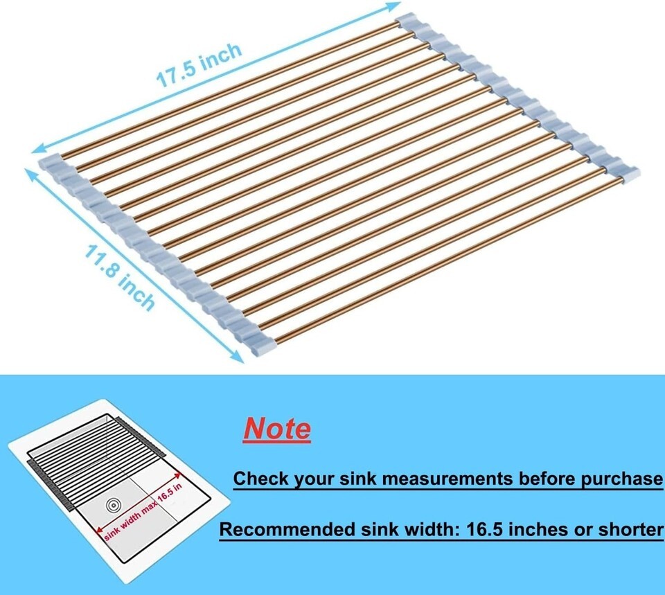 Elegant Gold Roll Up Dish Drying Rack 17.5"x11.8" for Smart Kitchen Organization