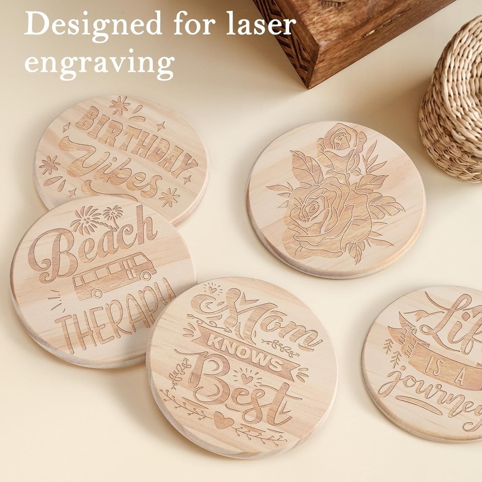 Elevate your entertaining and artistic endeavors with our 24 Pine Coasters. Unlike conventional options, our seamless design allows the natural beauty of pine to shine through, making each piece not just functional, but an extension of your style and creativity. Ideal for laser engraving, they're crafted to enhance your unique designs effortlessly, making them perfect for personal gifts that your loved ones will cherish.