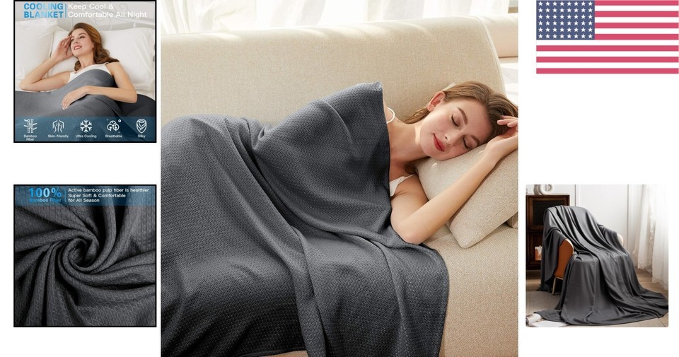 Cooling Blanket - 100% Bamboo Rayon, Lightweight & Comfy, 79"x91" Dark Gray