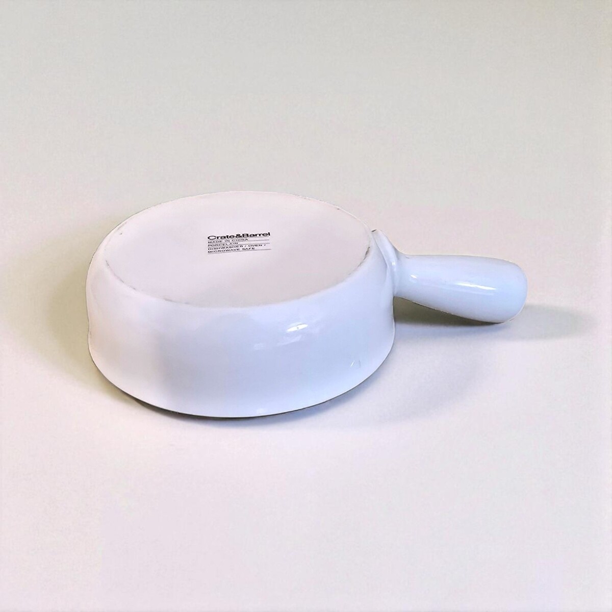 Crate & Barrel White Porcelain Au Gratin Dish Set 3 Handled Round 6.5” Oven Safe